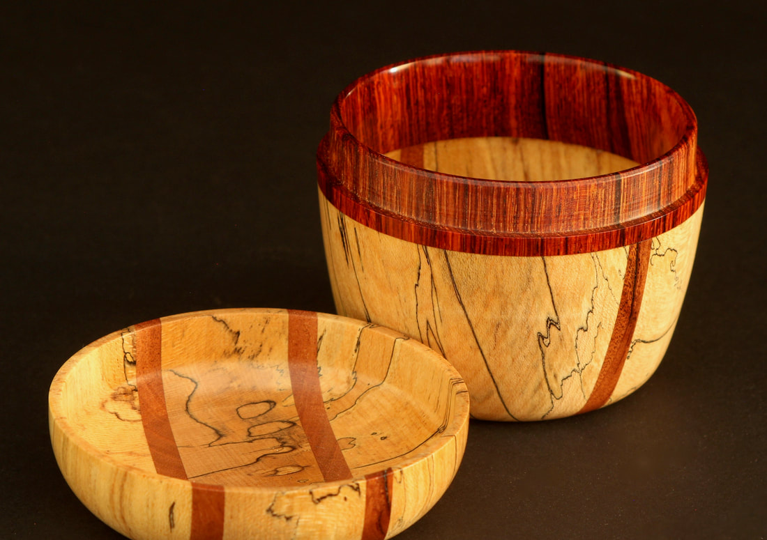 "Lidded Vessel" Spalted Maple, Mahogany & Coco-bolo